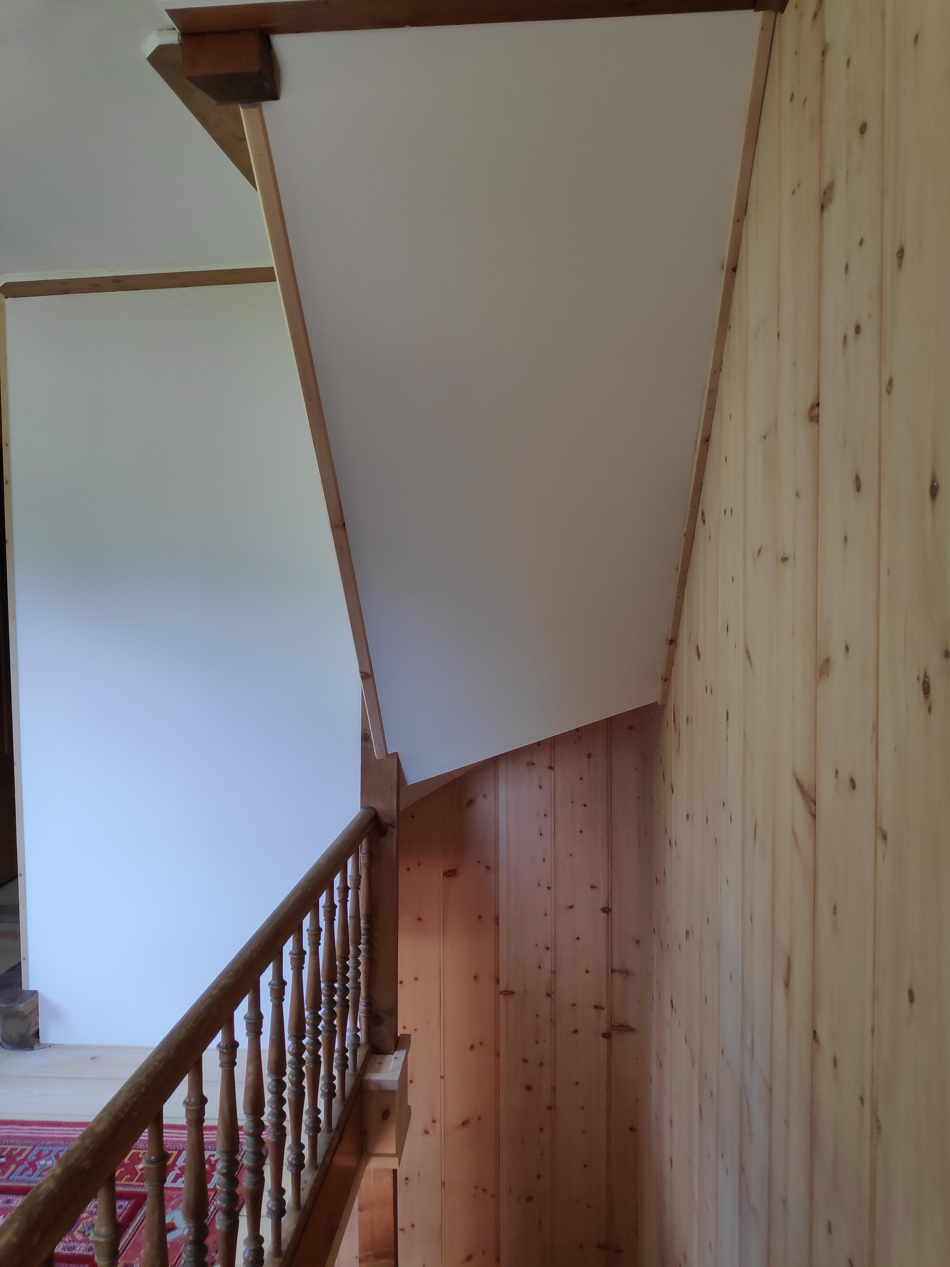 Zur Verbesserung der Energieeffizienz isolierten wir die Wände mit natürlicher Holzwolle, zudem wurden neue Fenster eingebaut sowie ein Holzboden verlegt.